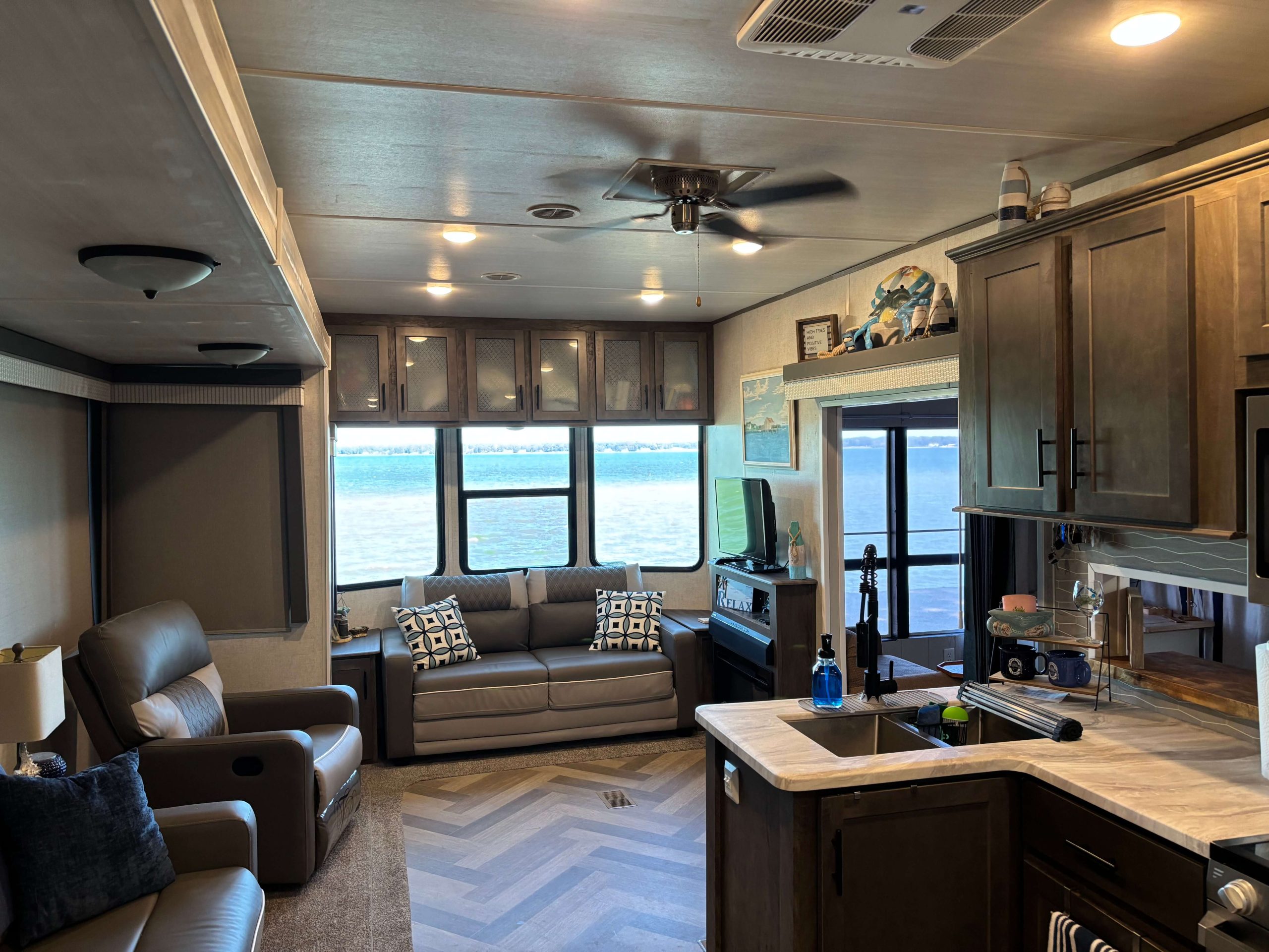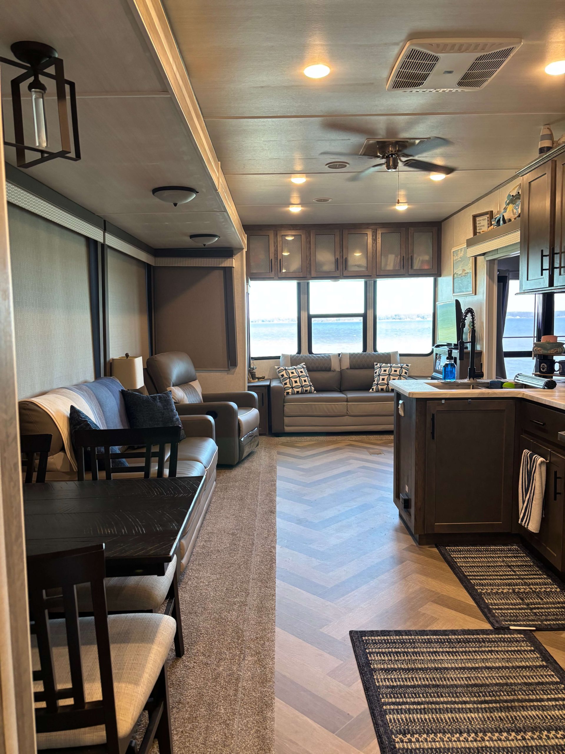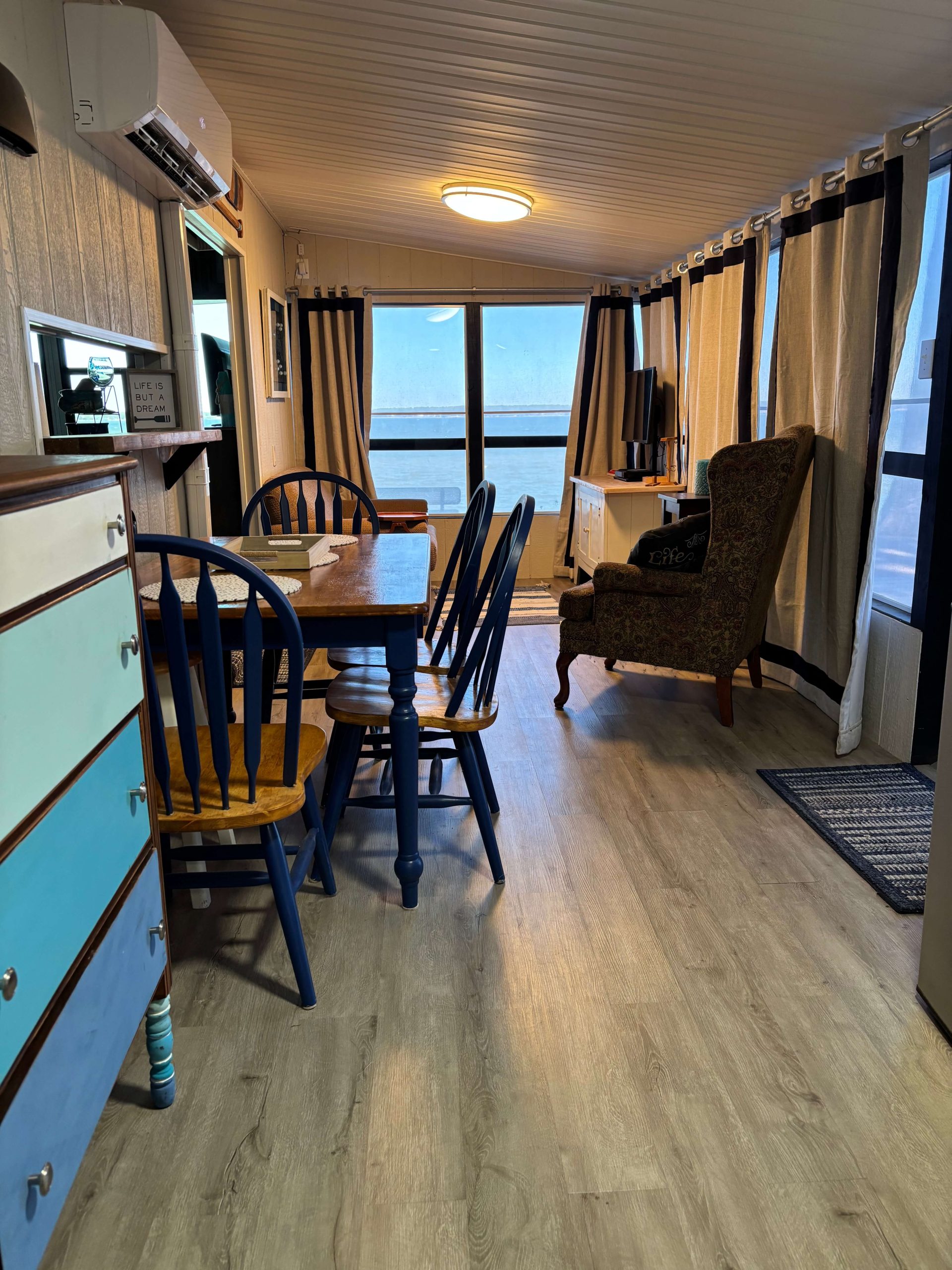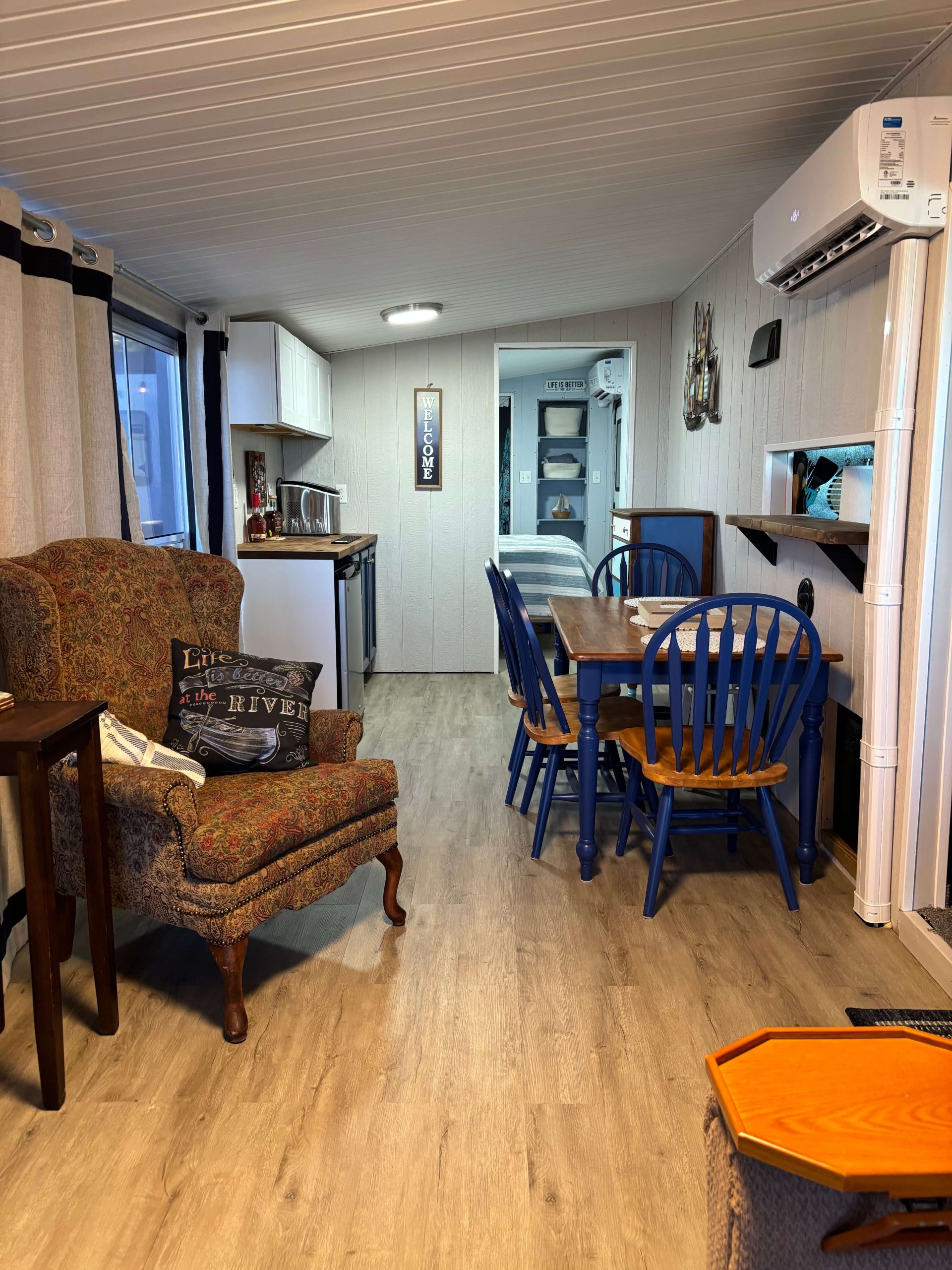 Step inside to find an open-concept floor plan, with living area, electric fireplace, high ceilings, and natural light. The kitchen has stainless steel appliances, it’s perfect for both everyday living and entertaining. The screen room has amazing views of the Rappahannock River, 2 mini-splits, wetbar, additional sleeping(2 full sleepers and 1 twin sleeper), and 2 dining areas.