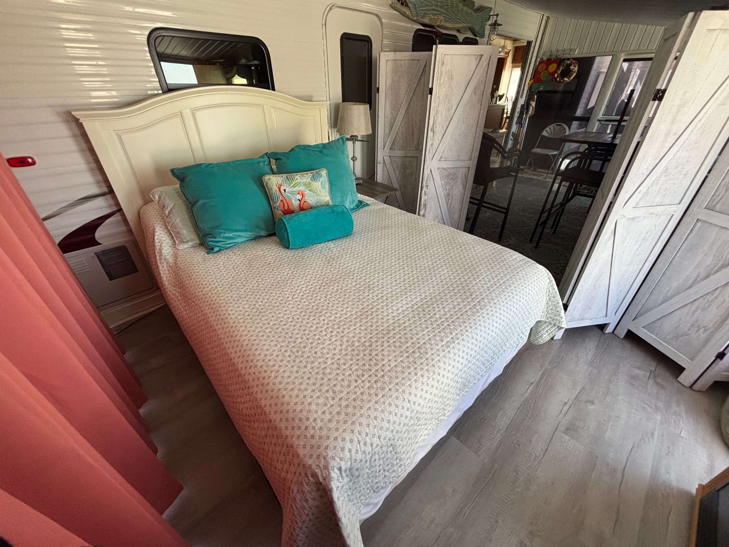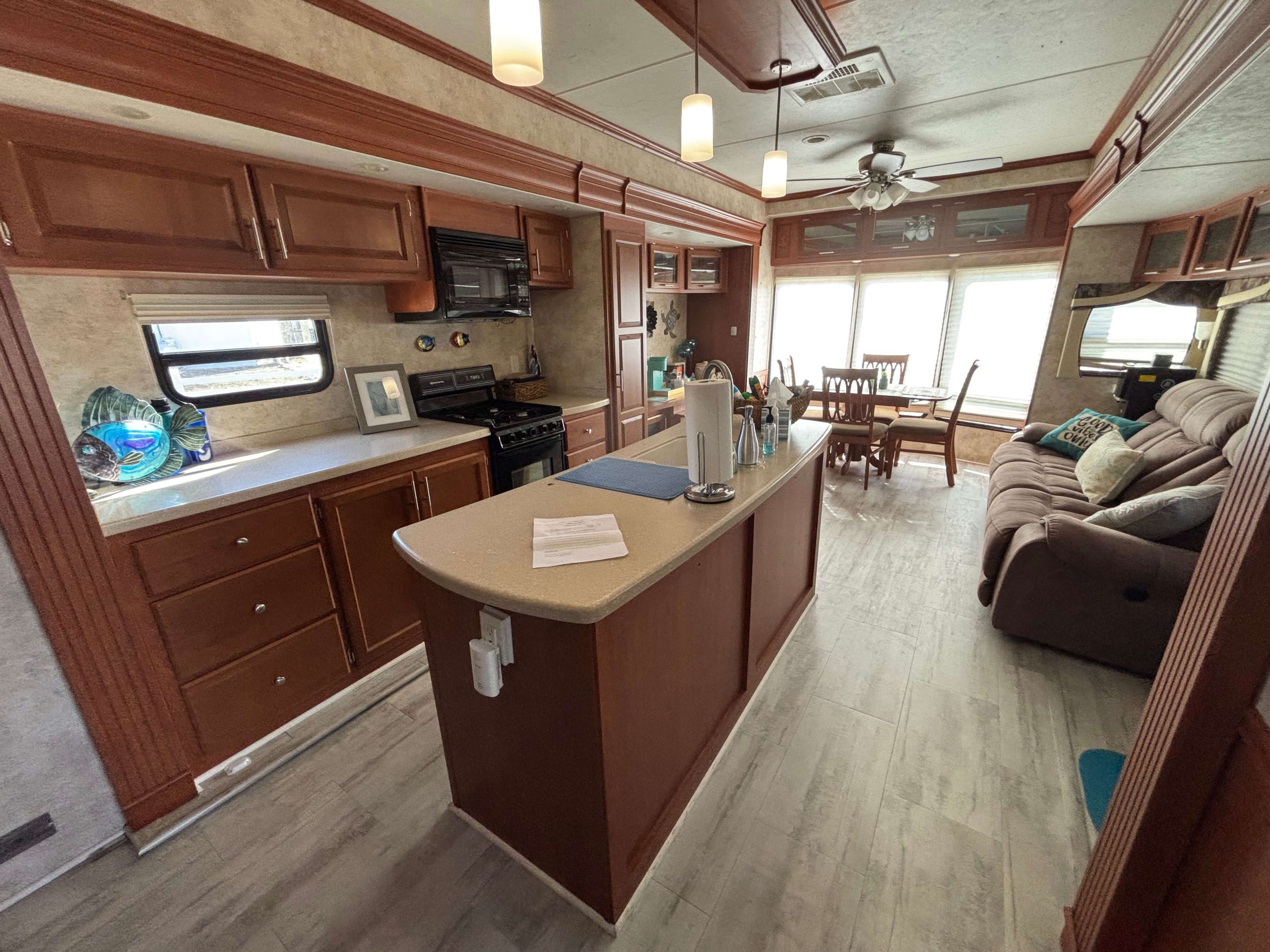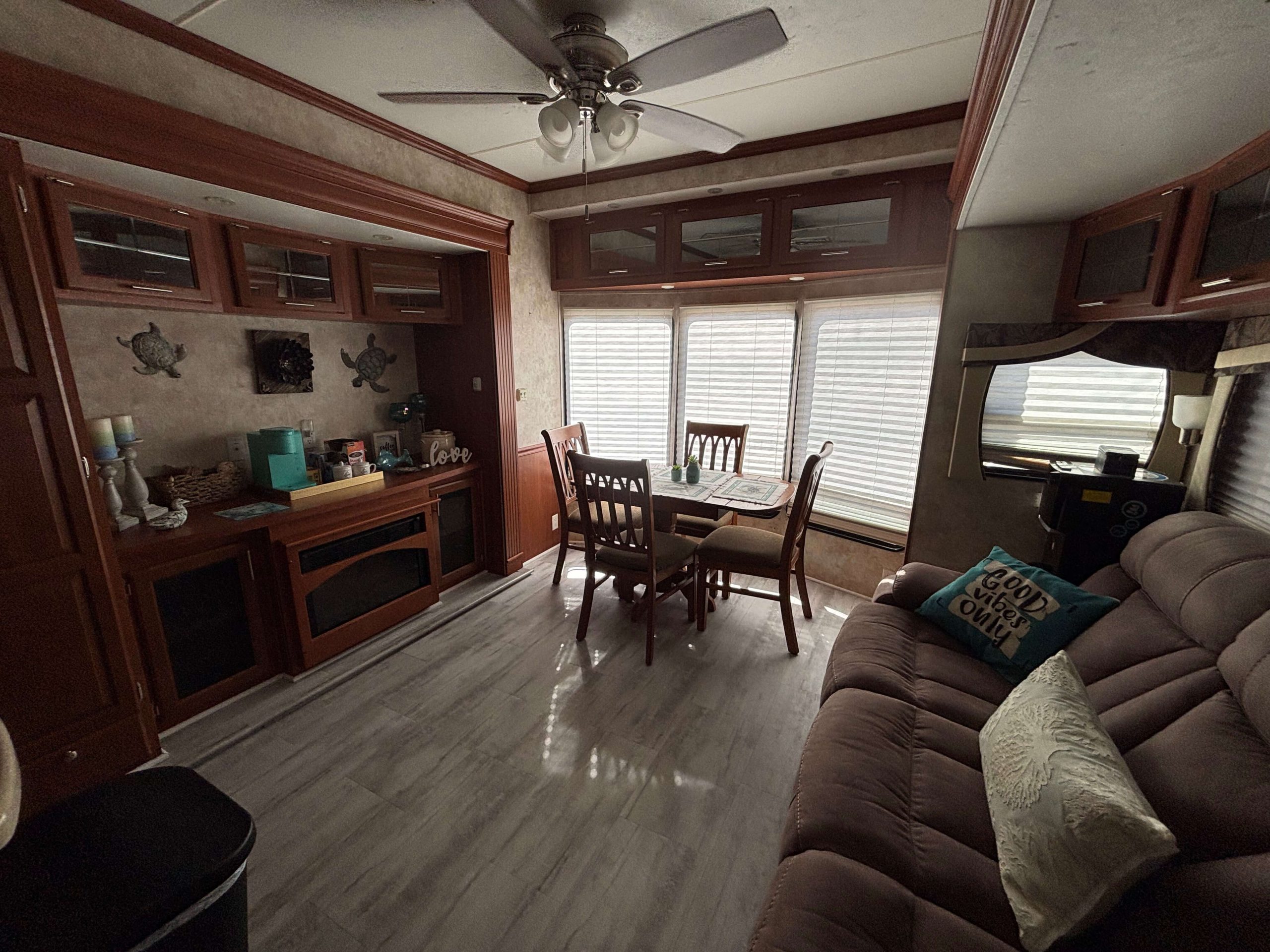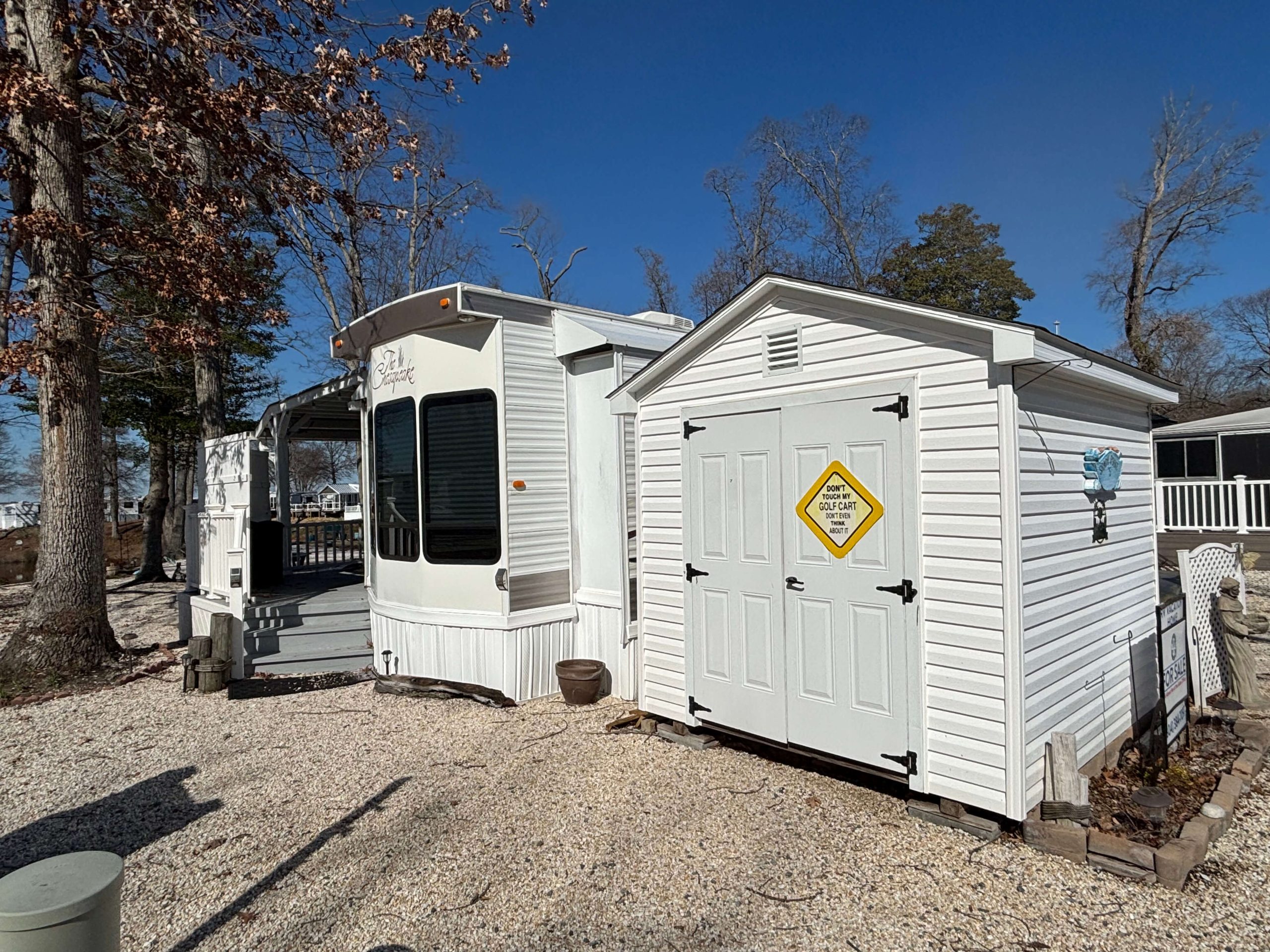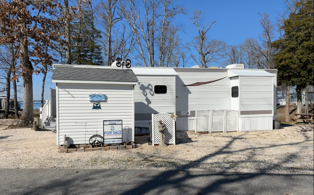 Step inside to find an open-concept floor plan, with living area, electric fireplace, high ceilings, and natural light. The kitchen is perfect for both everyday living and entertaining. The screen room has amazing views of the Rappahannock River, additional sleeping(queen bed), and living area. You have luxury vinyl plank flooring through the RV and screen room, 2 suede electric reclining sofas, large cabinet in screen room for additional storage, large shed wired and plumbed for washer/dryer and refrigerator(which are included), tankless water heater, 3 A/c units(2 in RV and 1 in screen room), 2 electric fireplace heaters, and composite outdoor furniture.