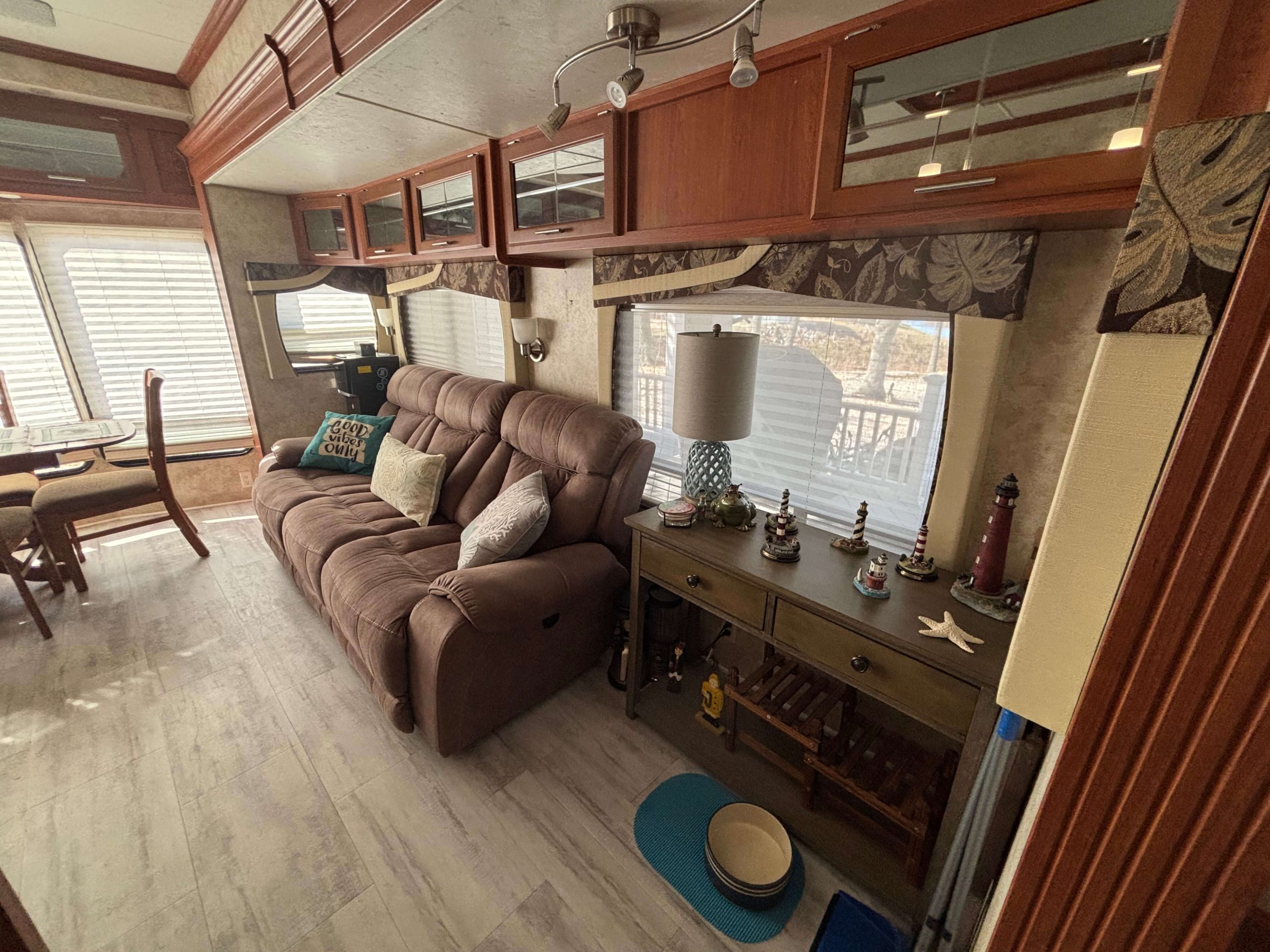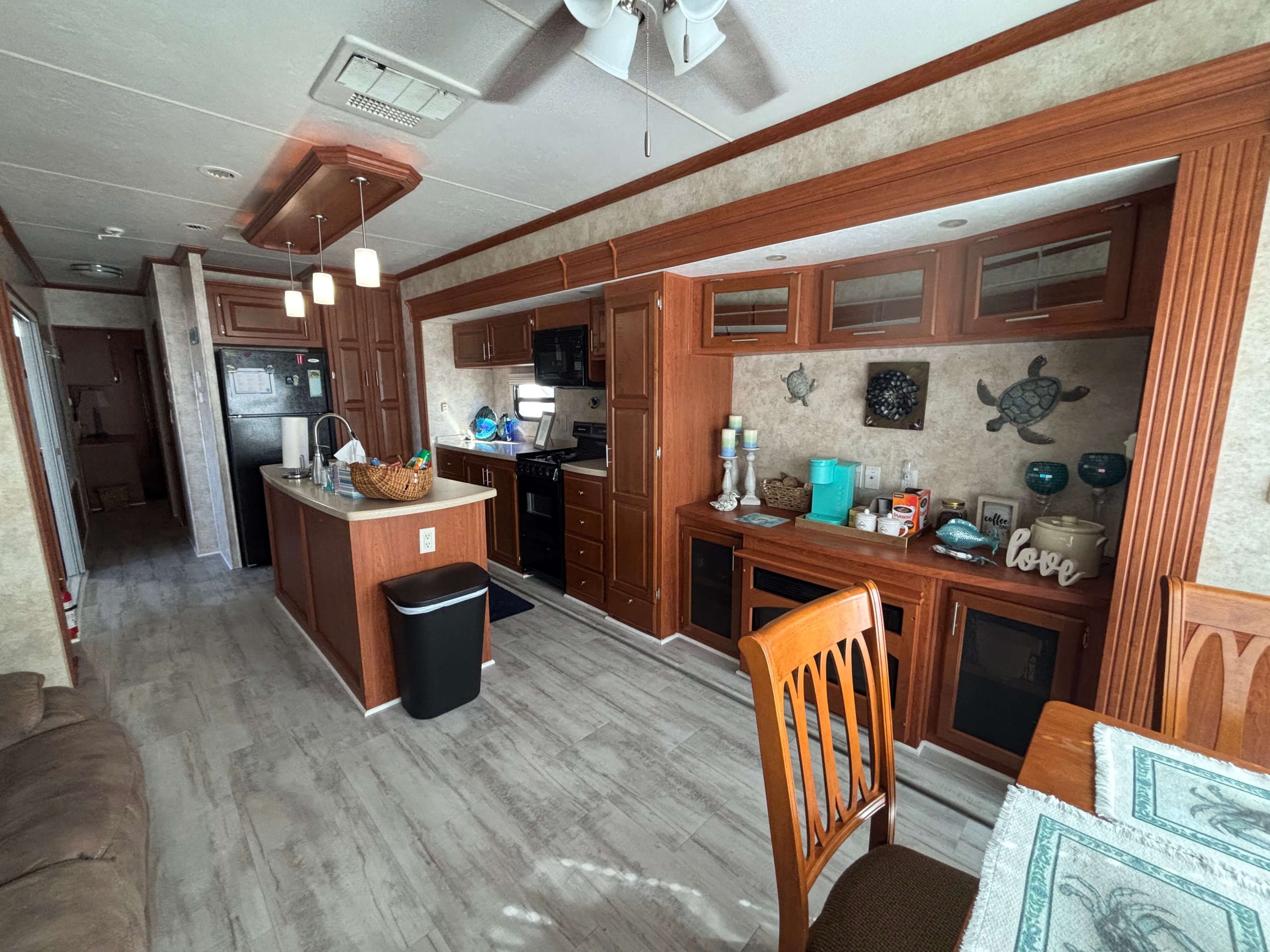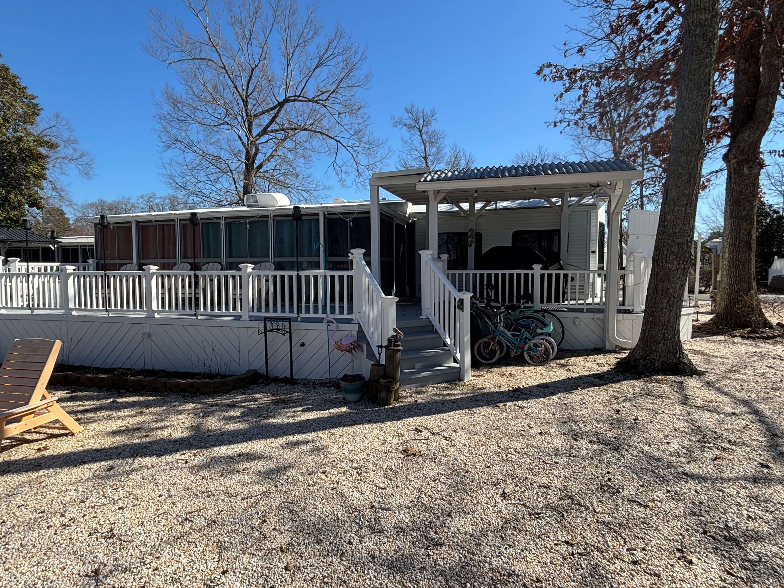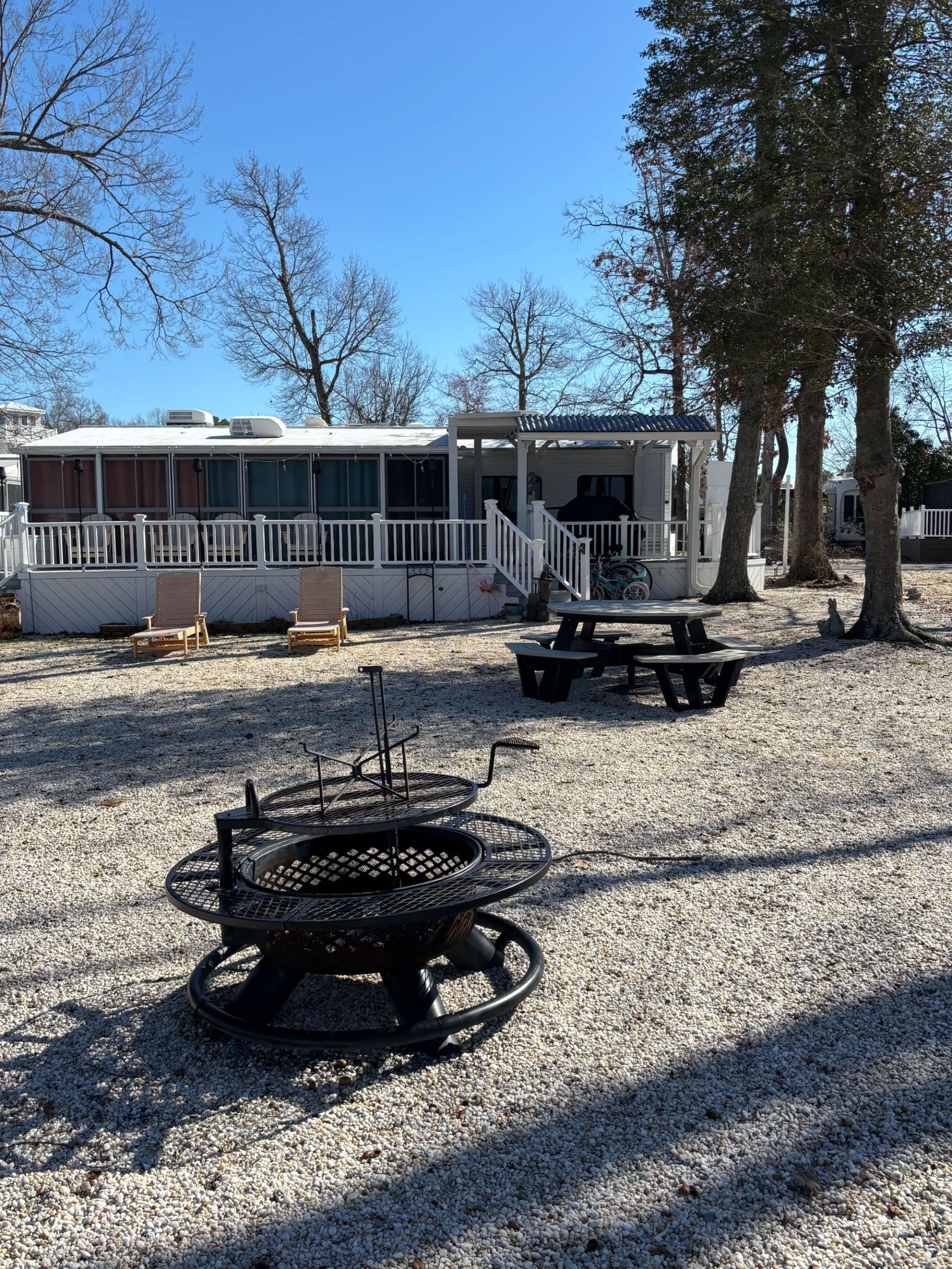 Step inside to find an open-concept floor plan, with living area, electric fireplace, high ceilings, and natural light. The kitchen is perfect for both everyday living and entertaining. The screen room has amazing views of the Rappahannock River, additional sleeping(queen bed), and living area. You have luxury vinyl plank flooring through the RV and screen room, 2 suede electric reclining sofas, large cabinet in screen room for additional storage, large shed wired and plumbed for washer/dryer and refrigerator(which are included), tankless water heater, 3 A/c units(2 in RV and 1 in screen room), 2 electric fireplace heaters, and composite outdoor furniture.