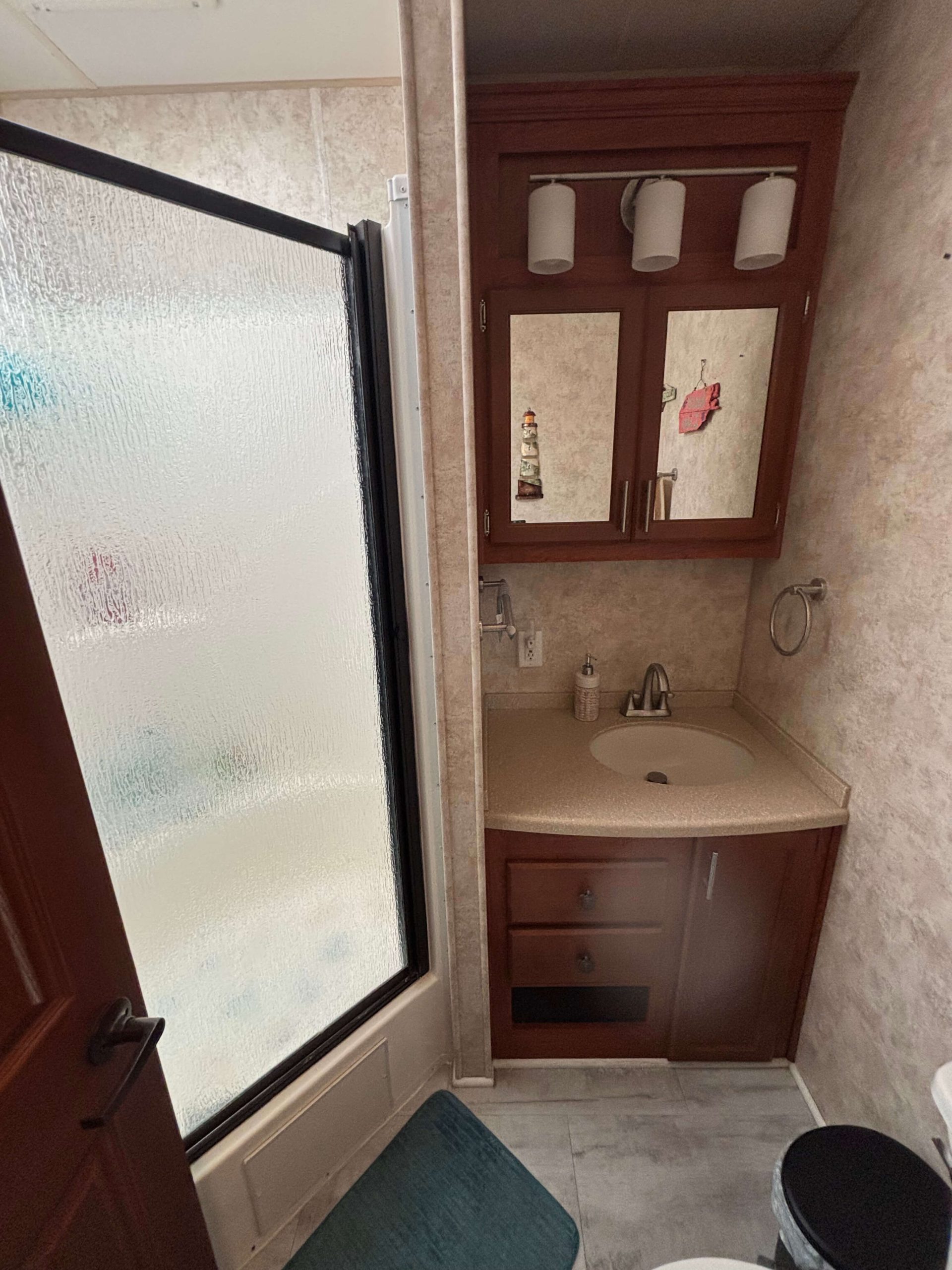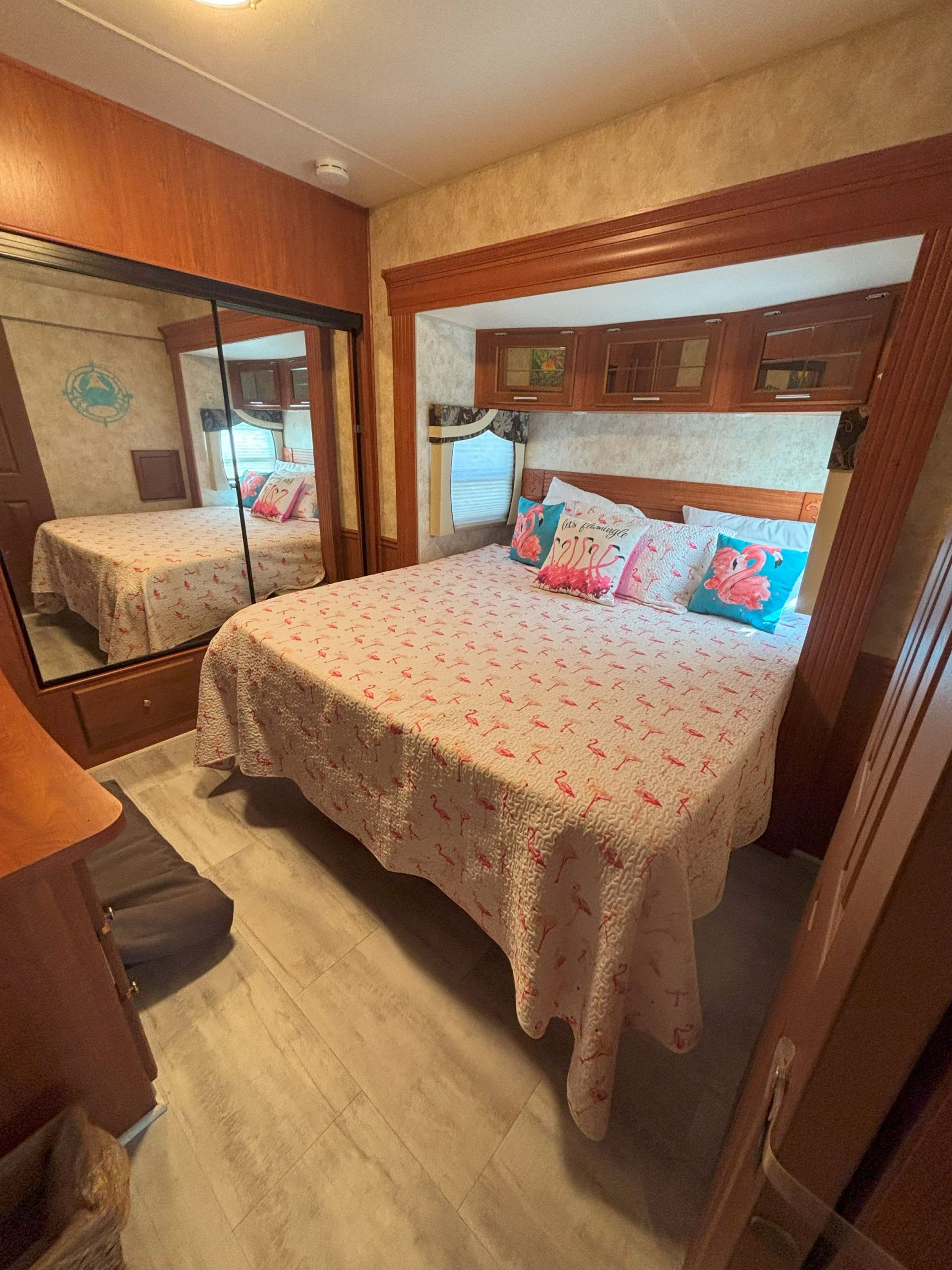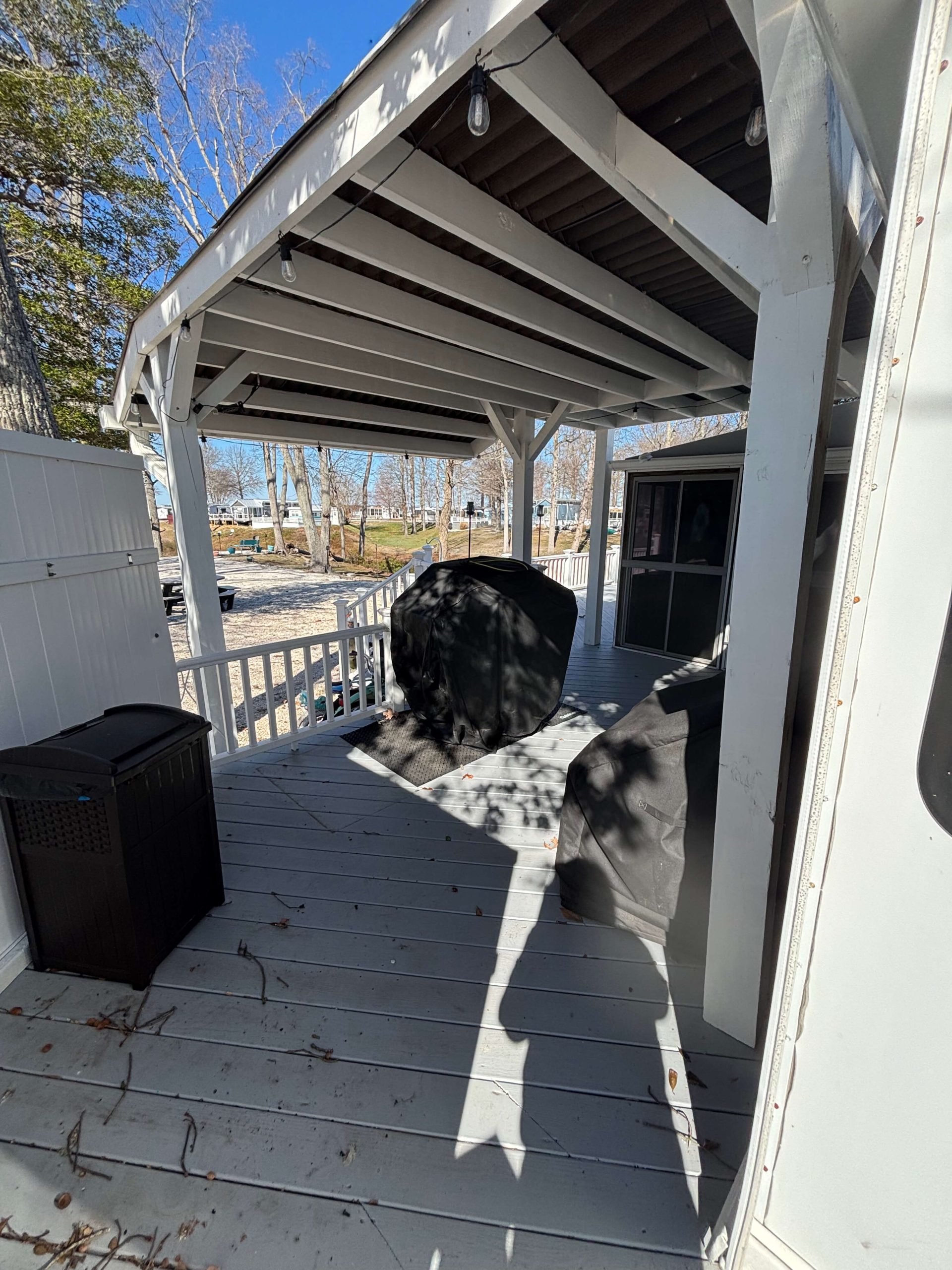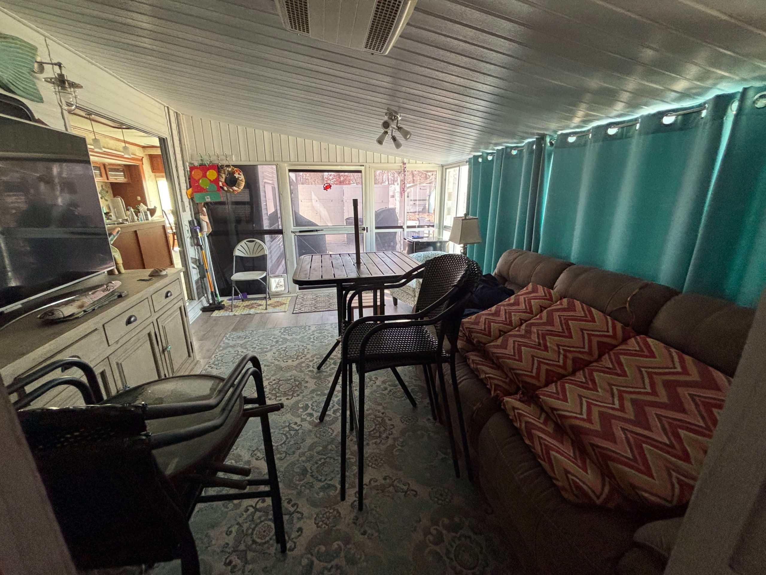 Step inside to find an open-concept floor plan, with living area, electric fireplace, high ceilings, and natural light. The kitchen is perfect for both everyday living and entertaining. The screen room has amazing views of the Rappahannock River, additional sleeping(queen bed), and living area. You have luxury vinyl plank flooring through the RV and screen room, 2 suede electric reclining sofas, large cabinet in screen room for additional storage, large shed wired and plumbed for washer/dryer and refrigerator(which are included), tankless water heater, 3 A/c units(2 in RV and 1 in screen room), 2 electric fireplace heaters, and composite outdoor furniture.